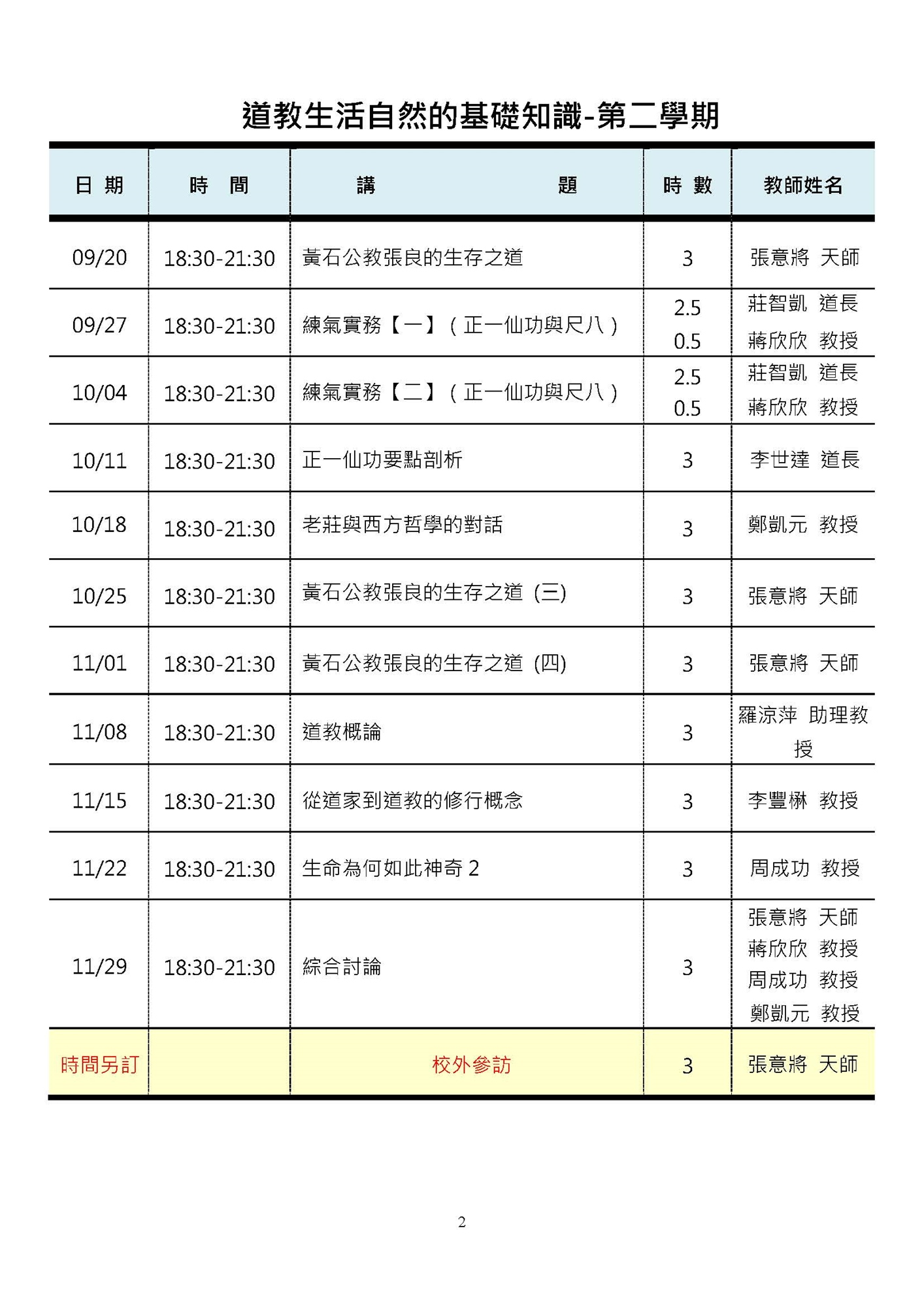 道教生活自然的基礎知識 第二學期